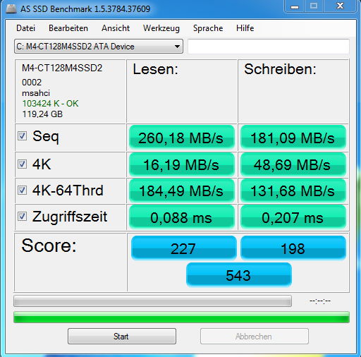 Sie wie folgt aus, allerdings Sata2. Aber wenn ich mir die Sata 6GB/s Werte so annschaue komm ich schon ins grübeln, obwohl viele meinen, dass der Unterschied nicht spürbar sondern nur messbar ist. hmmm