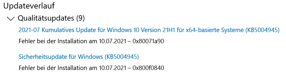 So hab da jetzt ein bisschen getestet mit der 19043.1081 X64 ISO von Birkuli wo man die KB5004945 partout nicht installiert bekommt weil ständig der Fehler 0x800f0984 auftritt.