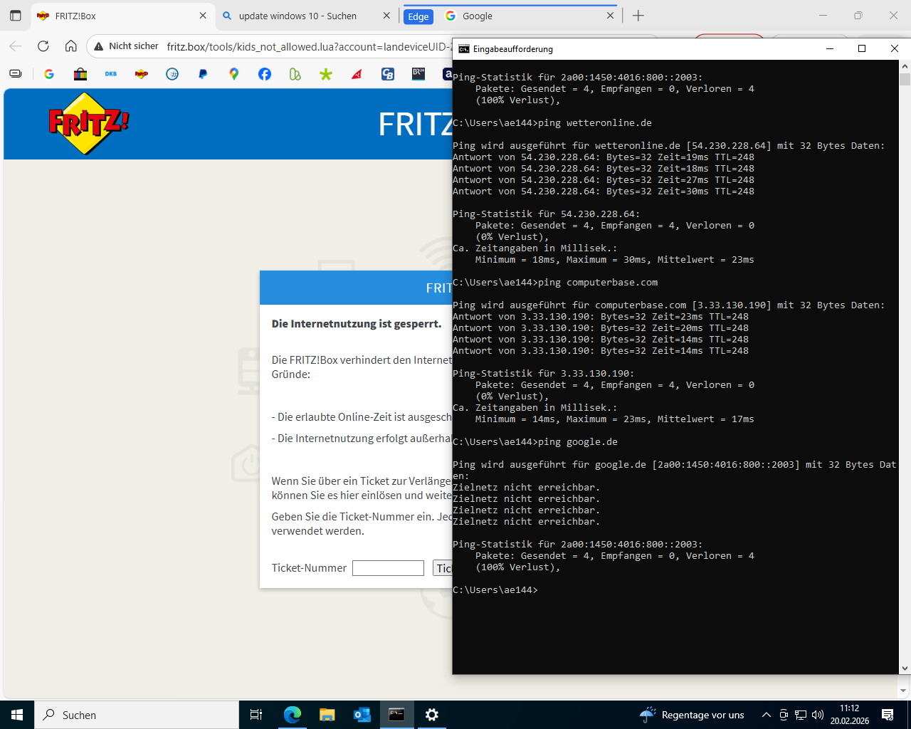 Dann nimm die doch raus und mache eine empirischen Beweis, dass es dann trotzdem nicht läuft. Aber es deutet schon sehr darauf hin, dass du hier geblockt wirst. Gerne auch sonst mal eine Übersicht der Fritzbox posten.Buffi64 schrieb:Router läuft mit Kindersicherung Einstellung freigabe unbegrenzt, macht hier Falschmeldung.