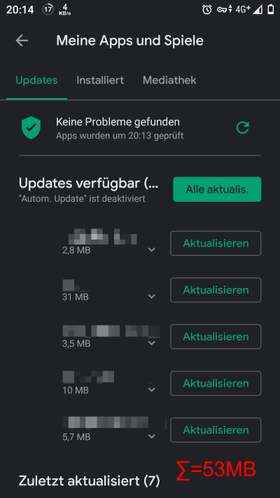 Updategrößen der aktuell anstehenen Updates: 53MB: