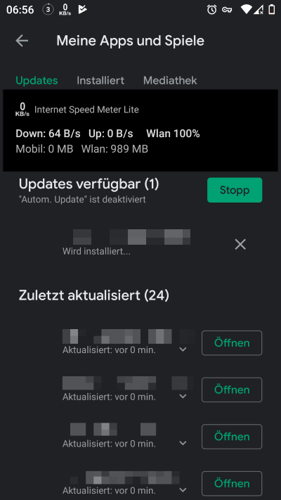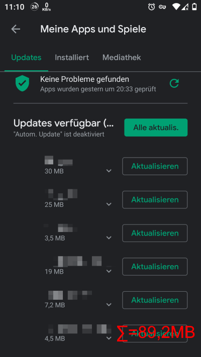 Verbrauchtes Datenvolumen [WLAN] vor den Updates: 28,9MB: