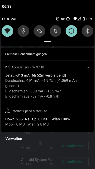 Verbrauchtes Datenvolumen [WLAN] vor den Updates: 2,8MB: