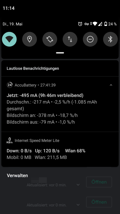 Verbrauchtes Datenvolumen [mobil] nach den Updates: 237,2MB: