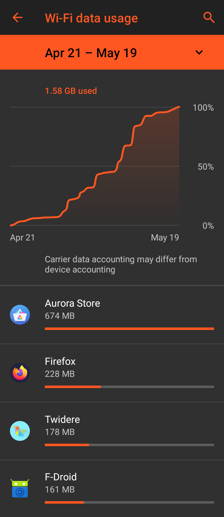 Nach 6 Stunden sind es nun 52,1 MB, also 2,5MB mehr. Das geht in Ordnung, einige Messenger waren an, es kamen ein paar Benachrichtigungen rein. Ein vergleichbar krasses Ansteigen des Volumens habe ich also nicht beobachtet.