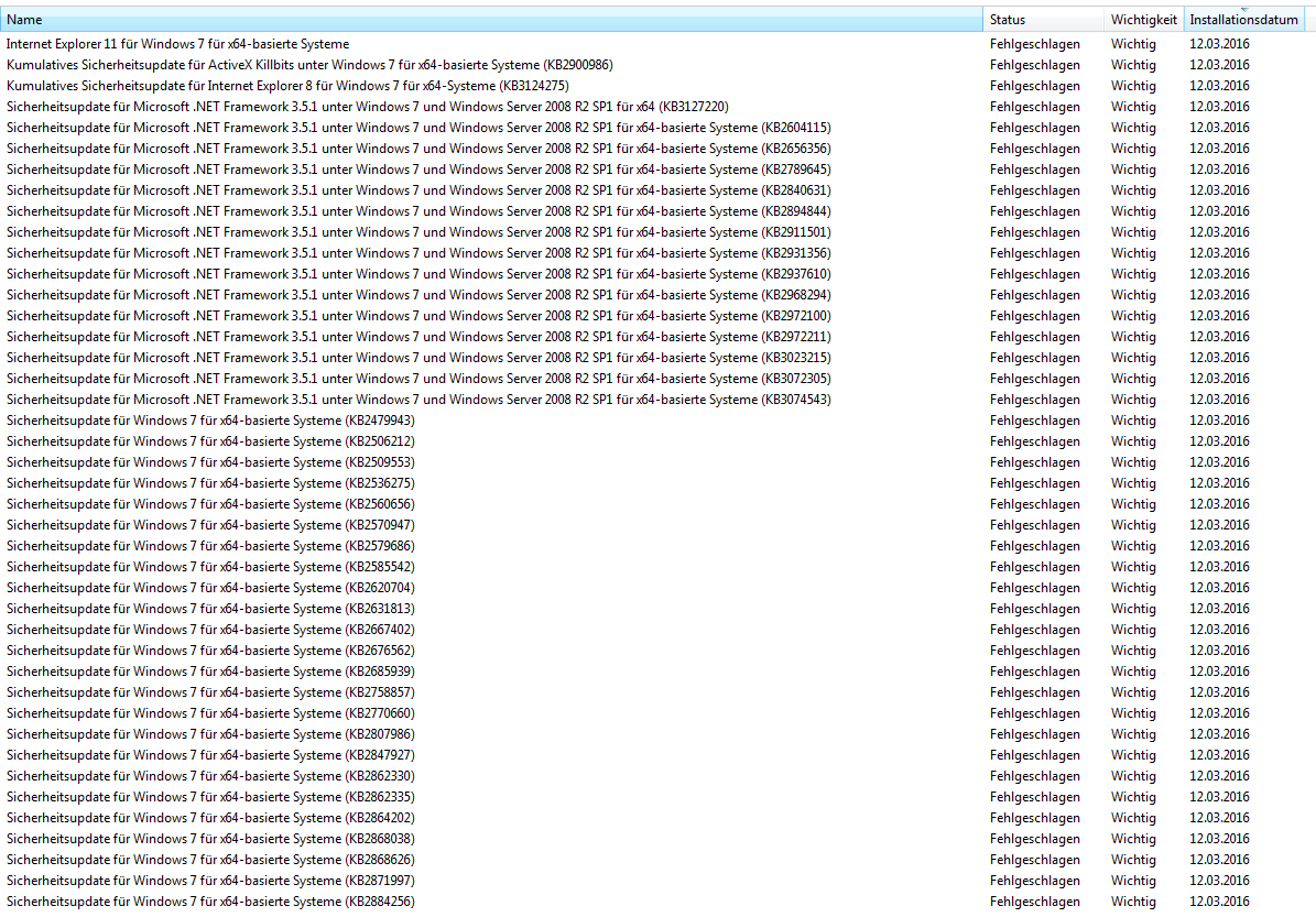 Seit längerer Zeit schon schlagen bei mir alle Updates fehl. Wenn der Computer nach den Updates wieder hochgefahren wird, kommt die Meldung, dass die Updates fehlgeschlagen sind und die Updates werden Rückgängig gemacht. Dies dauert dann auch eine Weile, bis ich den Computer wieder gebrauchen kann.