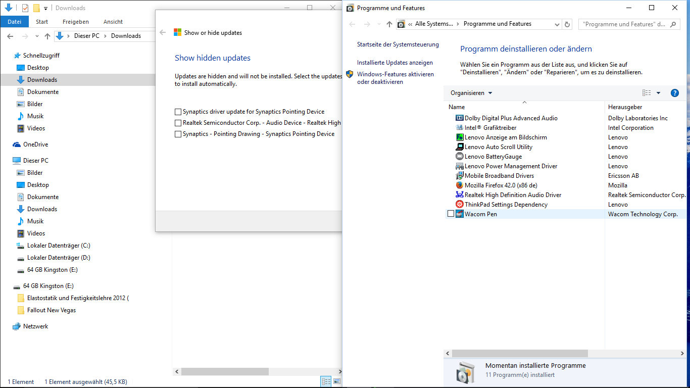 ich habe solangsam die Faxxen dicke mit dem neuen MS Schrott - ich versuche etliche nicht funktinierende Treiber von meinem x230T zu entfernen und Windows lädt sie nach dem Neustart immer sofort nach, bevor ich das Werkzeug anwenden kann, um die Updates auszublenden.