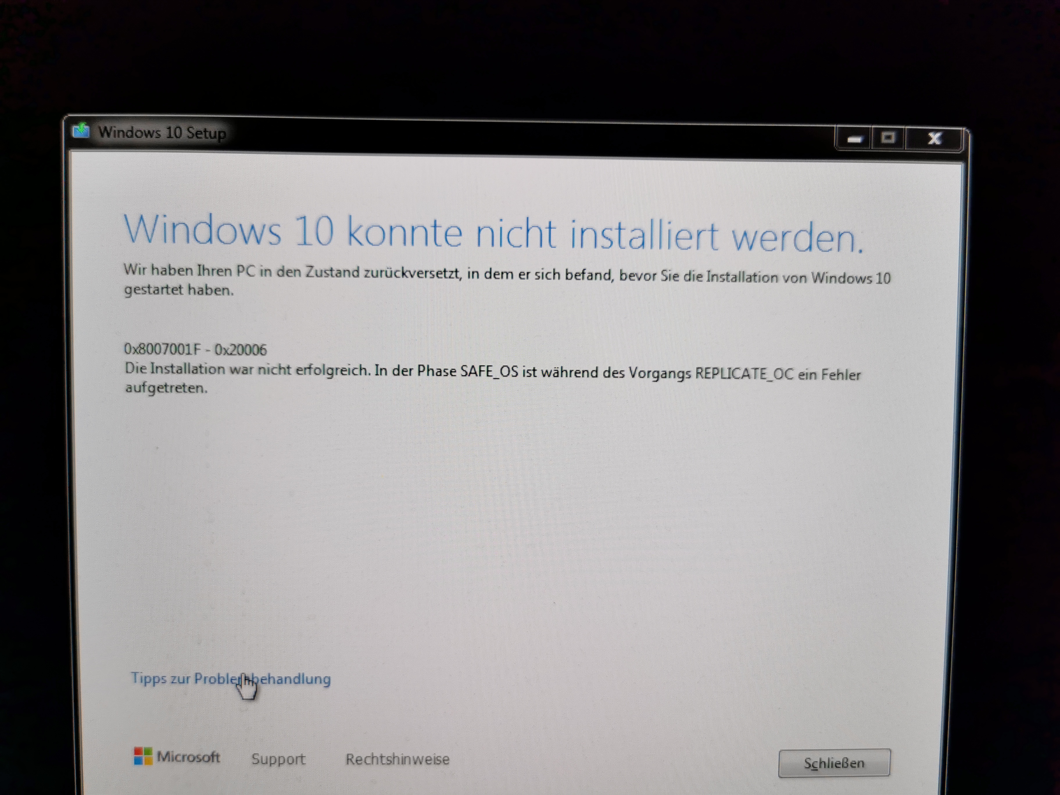 Ich versuche jetzt seit gut einer Woche meinen Desktop PC von Win 7 auf Win 10 upzugraden. Die Installation bricht immer zum gleichen Zeitpunkt ab mit dem Fehlercode