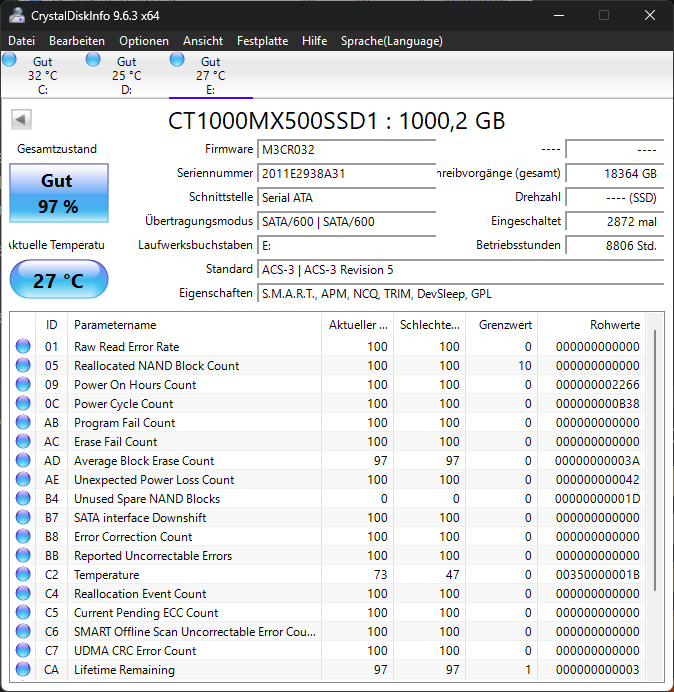 - Was ist mit der SSD und der Festplatte? Sind die werte noch gut?