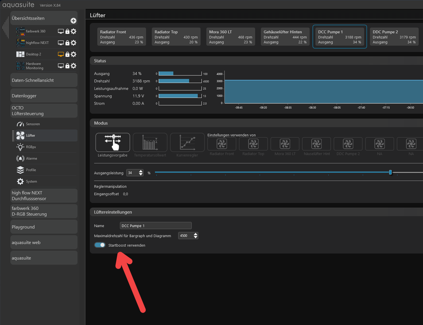 Jetzt gibts aber folgendes Problem: die Raijintek Antila D5 Pumpe mit AGB fällt hin und wieder aus, warum, keine Ahnung. aber nicht so, dass sie im Betrieb ausfällt, sondern sie geht gar nicht erst an, wenn der Rechner startet. Mache ich dann einen Neustart, gehts meist wieder, dann auch 30 Std. am Stück wenns sein muss. 1-2x im Monat. nicht wild, aber würde ich gerne abstellen.