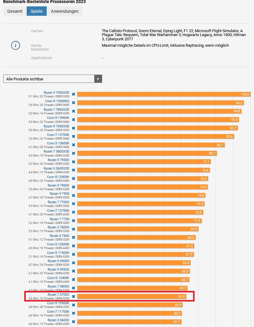 Wenn man jetzt die aktuelle CPU-Bestenliste der PCGH nimmt. Wäre die nächste CPU, die gleich sogar etwas schneller ist, der i5 13400F. Ein recht günstiges Mainboard dazu und extra nicht so schnellen RAM. Um den Preis etwas zu drücken.