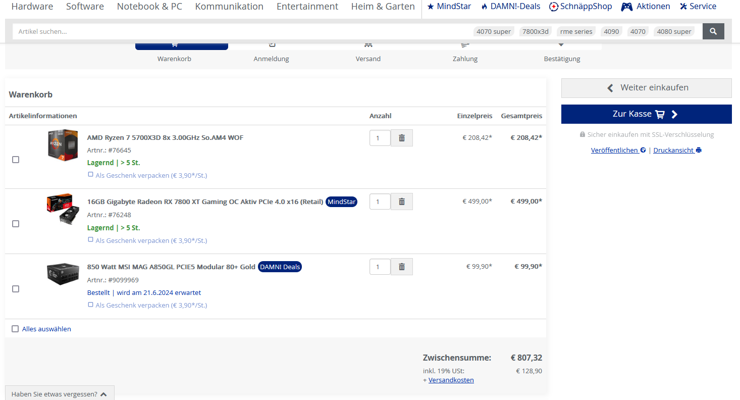 1. Sapphire Pulse RX 7800XT, wenige Monate alt für 410€