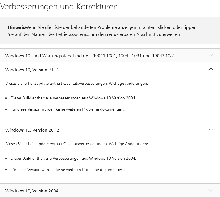Version: Betriebssystembuilds 19041.1110, 19042.1110 und 19043.1110