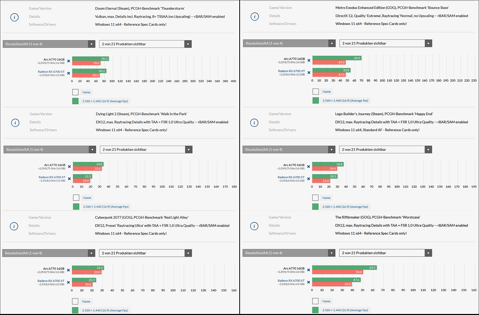 Stimmt, denn in der Realität kommt die RX 6700 XT teilweise noch schlechter weg.