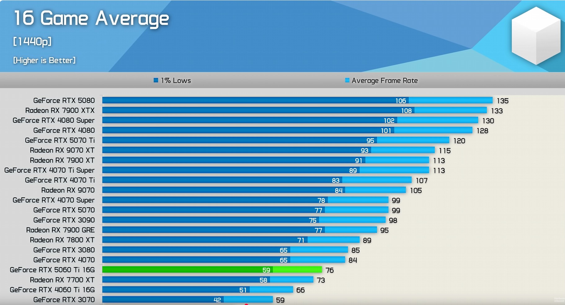 ..........anscheinend gesehen, dass die Ergebnisse nicht konform mit anderen Tests gehen und zum Test der RTX 5060Ti zwei Games aus dem Pacrour genommen....