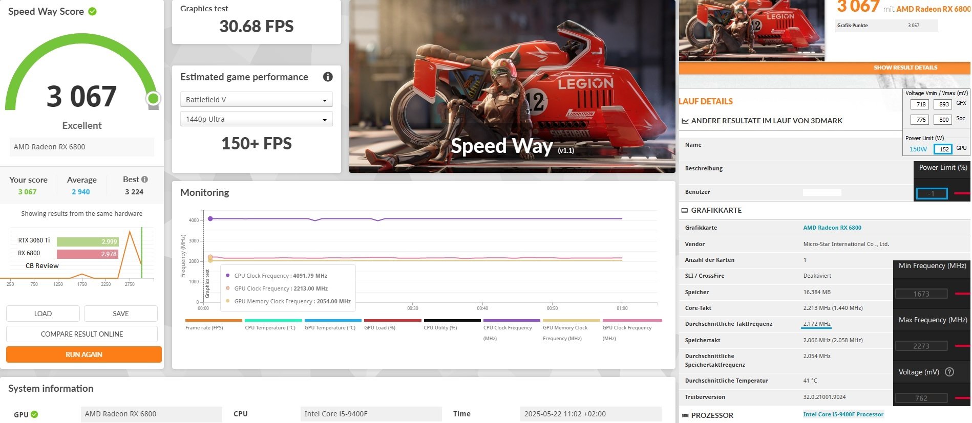 Nachteil der RX 6800 ist halt der Verbrauch und schlechtere Leistung mit RT, rein von der Leistung in Rasterizer ist die Karte super.