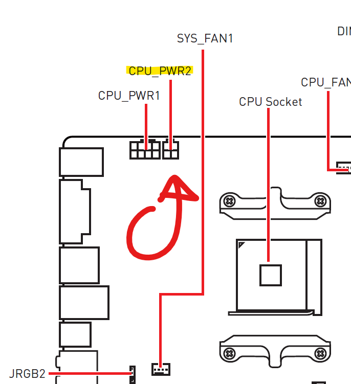 Im Anhang ist ein 'Schema' des MBs zu sehen. Mein Netzteil hat nur ein Kabel für CPU_PWR1, CPU-PWR2 war nie angeschlossen. Mit dem 5800x hat das nie Probleme gemacht. TDP ist ja die selbe, aber rein logisch wird die 5950x schon etwas mehr ziehen. Könnte hier das Problem liegen?