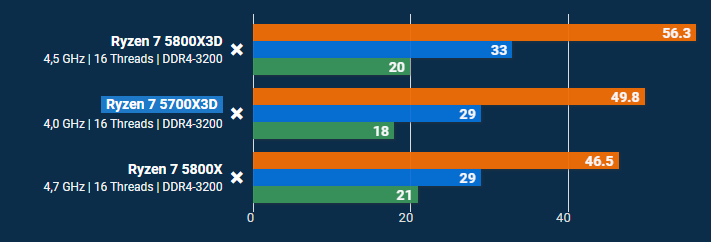 Jeder 3D wischt mit einem non-3D den Boden auf, das merkt man überall. In der Praxis sogar mehr als alle Balken sagen. Die Frage beim 5800x3D ist halt eher ob man sich nicht gleich einen 9800x3D holen sollte.