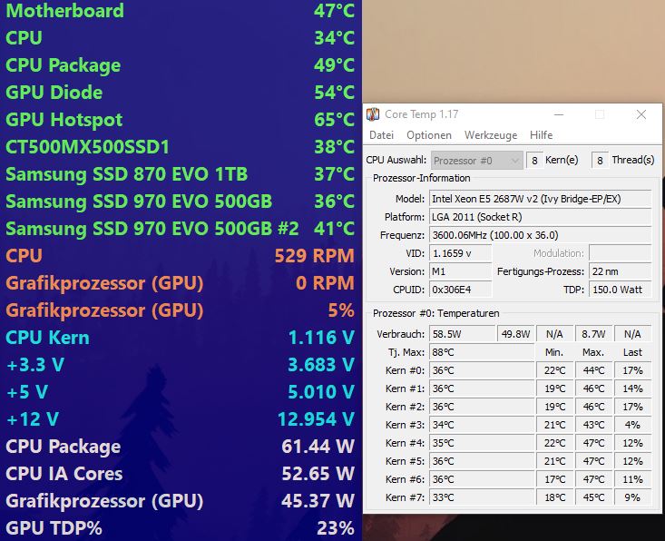 -> Schaue Dir mal genau an, was wieviel Strom frisst. Monitore, CPU, Grafikkarte, System insgesamt usw. HWinfo ist da z.B. ein Programm.