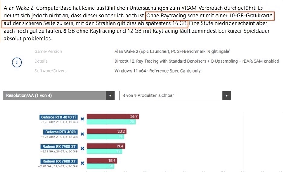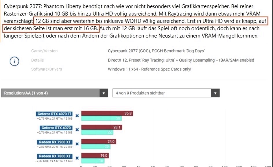 Um mal bei der grandiosen Liste zu bleiben und den erst ab 16GB VRam reicht....mit 12GB VRam max mit Raytracing hat man Probleme.AMD-Flo schrieb:Alle hier gezeigten Titel haben keine hohen VRAM Bedarf.