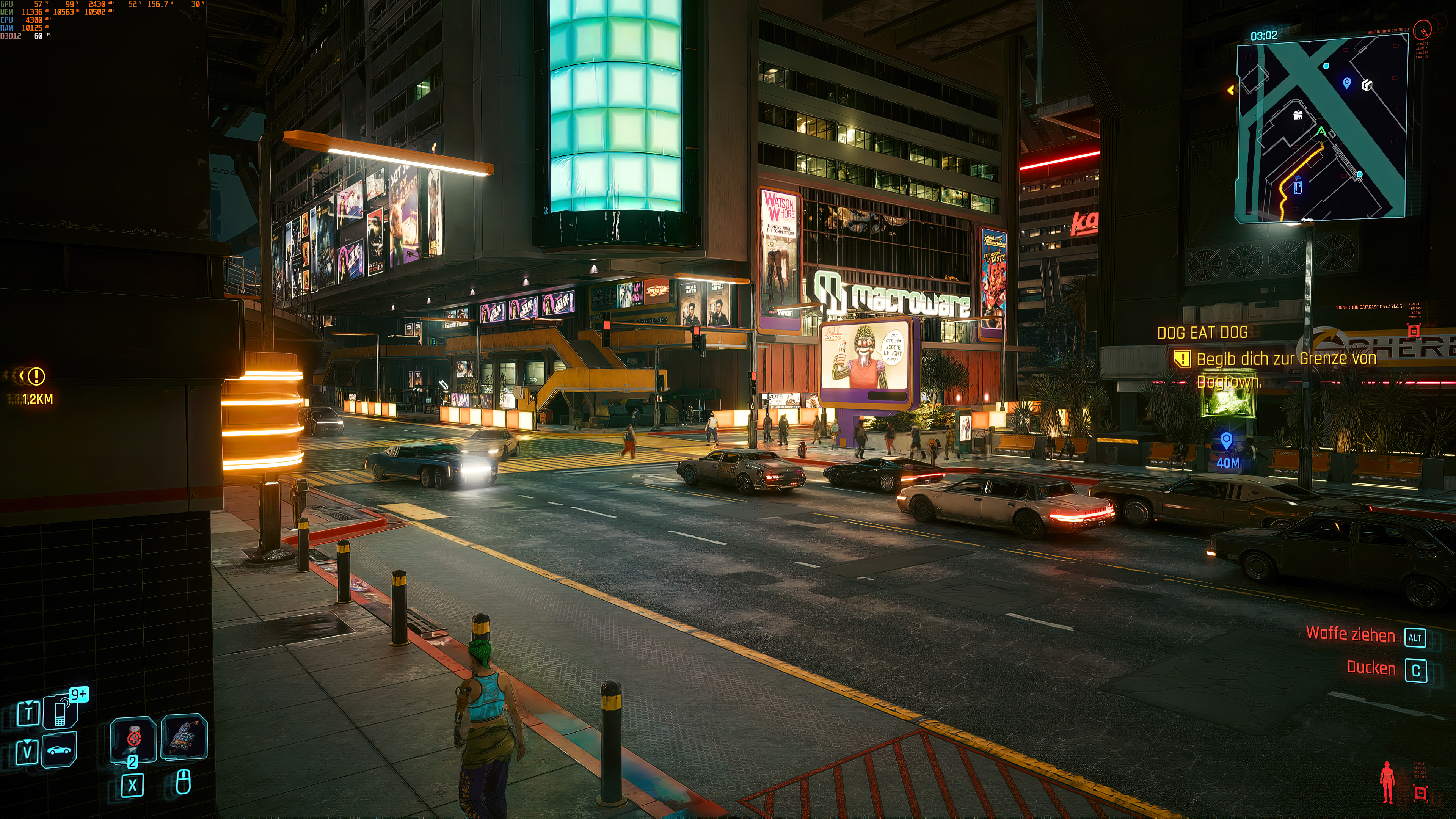 Warum sollte der @TE an seinem 4K TV unbedingt DLSS/Q nehmen? Meine Screens sind von einer auf 160W gedrosselten RTX 4070Ti...also ungefähr RTX 4070 Level. Sogar mit Pathtracing und DLSS auf Performance.AMD-Flo schrieb:Zumindest bei Spielen wie Phantom Liberty mit max. Details und Quality Upsampling.