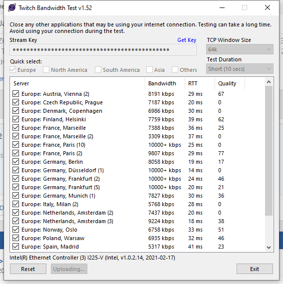 ich habe das Problem, dass ich mit meinem 1 GBit Vodafone Anschluss (Die Leistung kommt auch effektiv bei normalen Up und Downloads an.) keine gute Verbindung zu den Twitch Servern bekomme. Dadurch gibt es Probleme beim streamen über OBS. Es steht auch immer da, dass ich Verbindungsprobleme in x Prozent habe. Solange es nur ein paar Prozent sind geht das, aber ich habe mitunter einfach 10% Verlust und das guckt sich keiner auf Dauer an.