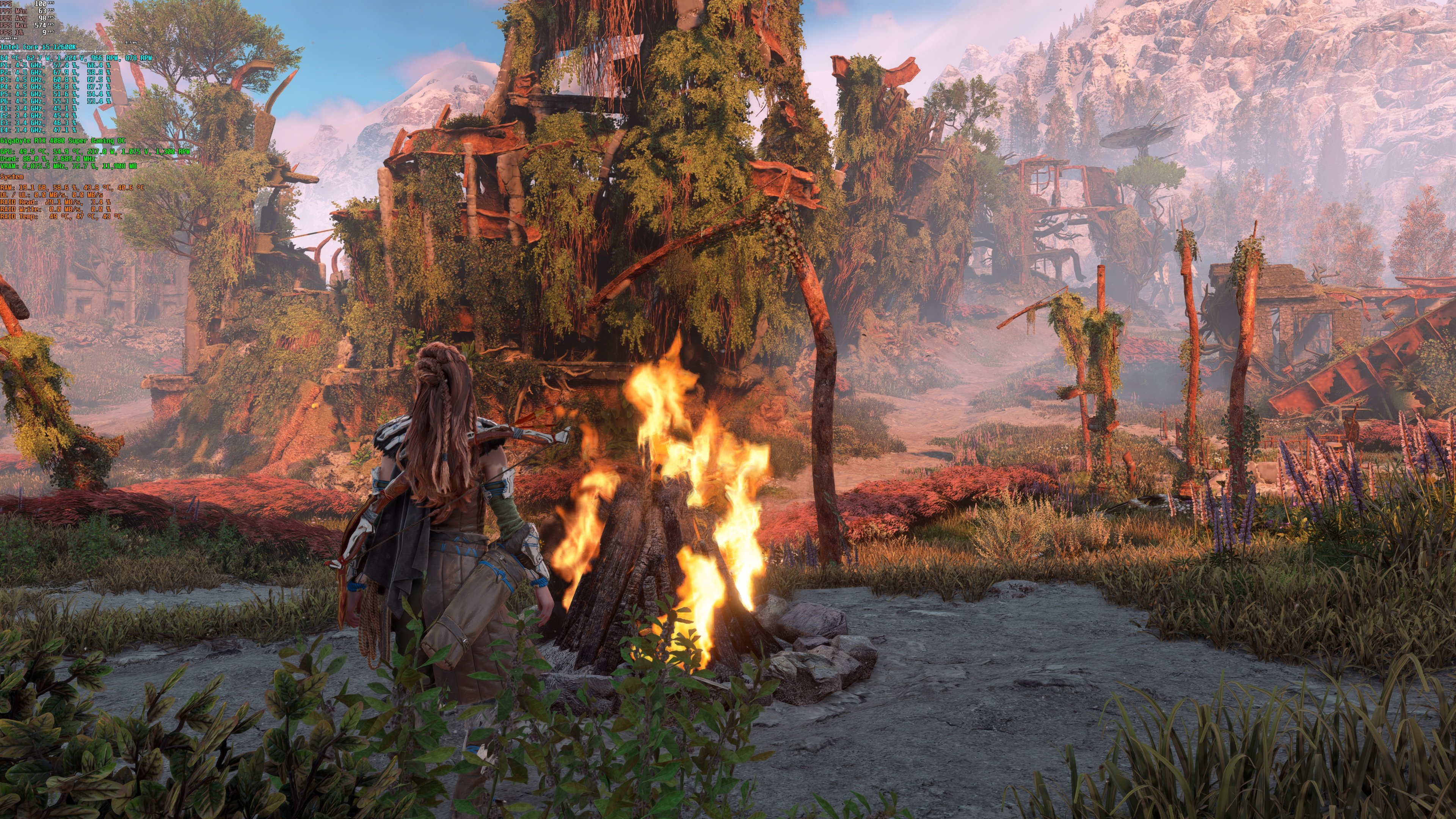 Das Spielerlebnis ist so - und nur so, ohne Variable Refresh Rate - das mit Abstand sauberste, flüssigste und Lagspike-freieste, das man sich wünschen kann (siehe Framegraph links oben, der leider wegen des etwas verrutschten Layouts etwas verdeckt wird).