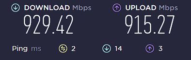 Technisch bedingt (das AON Modul von AVM hat nur 1000MBit) kommen Netto bis zu 950MBit in beide Richtungen an. Der Wert schwankt, lag aber bisher nie unter 900Mbit. Peering Probleme hatte ich bisher keine.