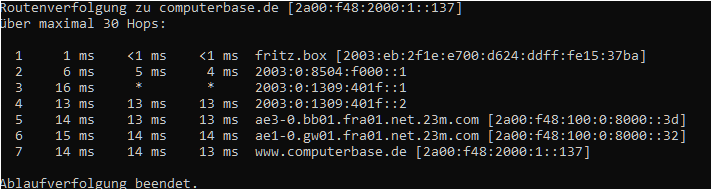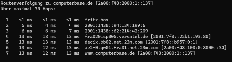 Bei google de oder com lande ich nach meinem Provider bei "2001:7f8:1::a501:5169:2", was zu Google gehört und irgendwo in den Niederlanden ist. Die Standort des nächsten Hops soll nach der IP in den USA sein, was aber mit einer Ping-Zeit von 1ms unmöglich ist.