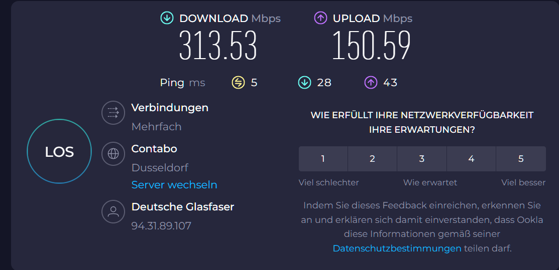 An der alten Adresse hatte ich Gigabit welche auch zu jeder Uhrzeit voll durch kamen und an der neuen habe ich aktuell 500mbits. Als wir hierhin gezogen sind war das dass maximum hier und die waren auch im ersten halben Jahr oder so leider sehr instabil gerade zur Abendstunde. Aber nach so ca einem halben Jahr gabs dann ne Zeit wo es vermehrt Wartungsarbeiten gab und seitdem sehr stabil auch wieder durchgängig volle Geschwindigkeit und gute niedrige Pings. Sogar Gigabit ist hier wieder möglich aber ich habe noch nicht aufgewertet da mir momentan die kurze Kündigungsfrist gefällt welche dann wieder auf die 2 Jahre hochgeschraubt wird wenn ich upgrade. Und so langsam sind die 500mbits ja nun wirklich nicht auch wenn ich grundsätzlich Fan davon war mit der Gigabit Leitung wenn die Server es zulassen doch nochmal doppelt so schnell mit Downloaden fertig zu sein
