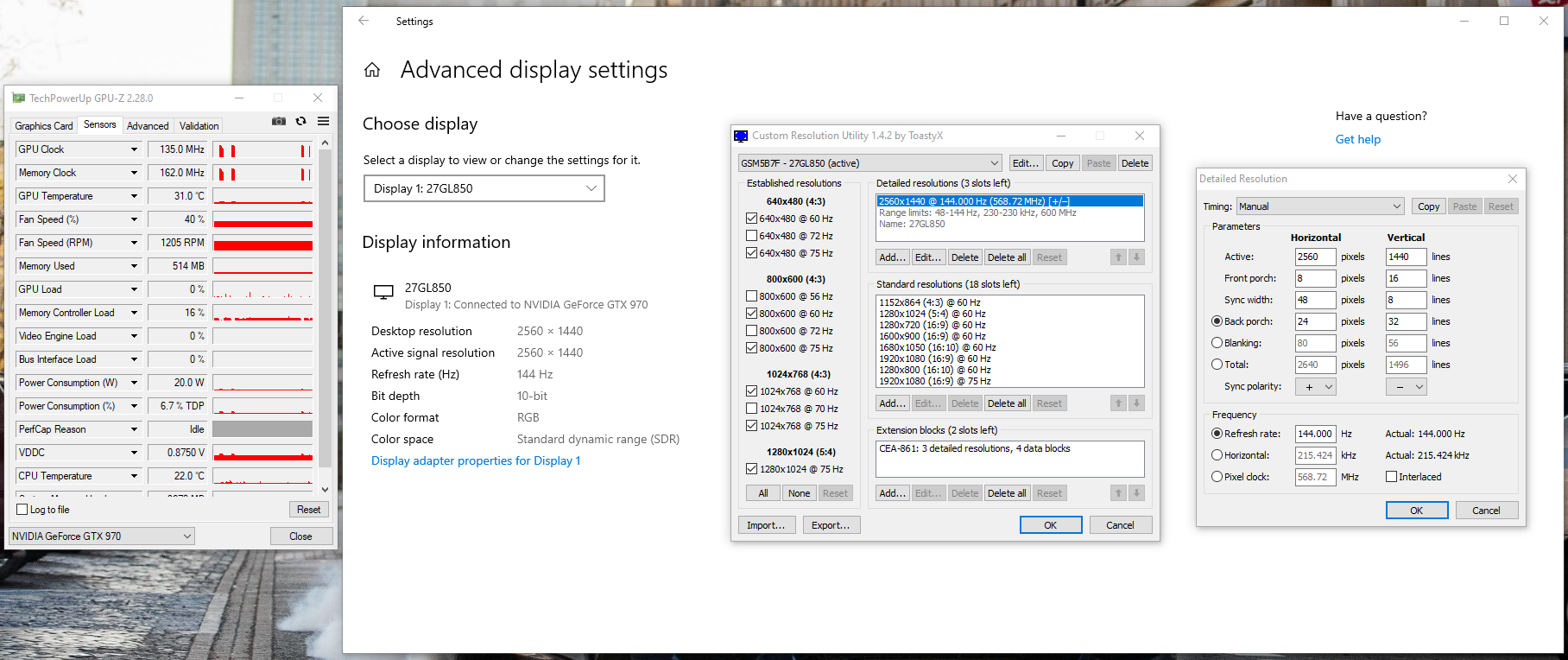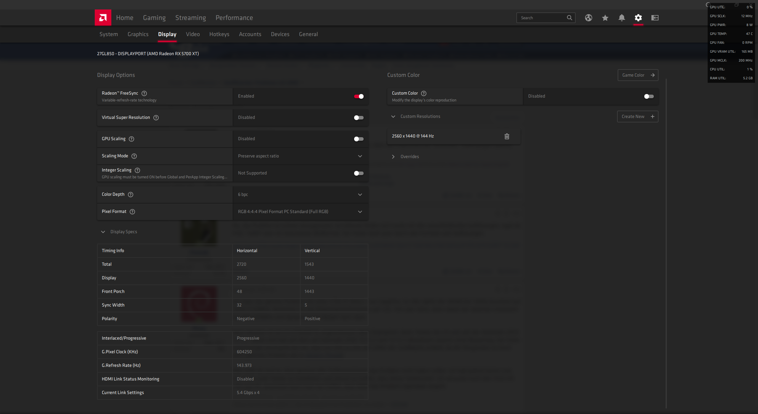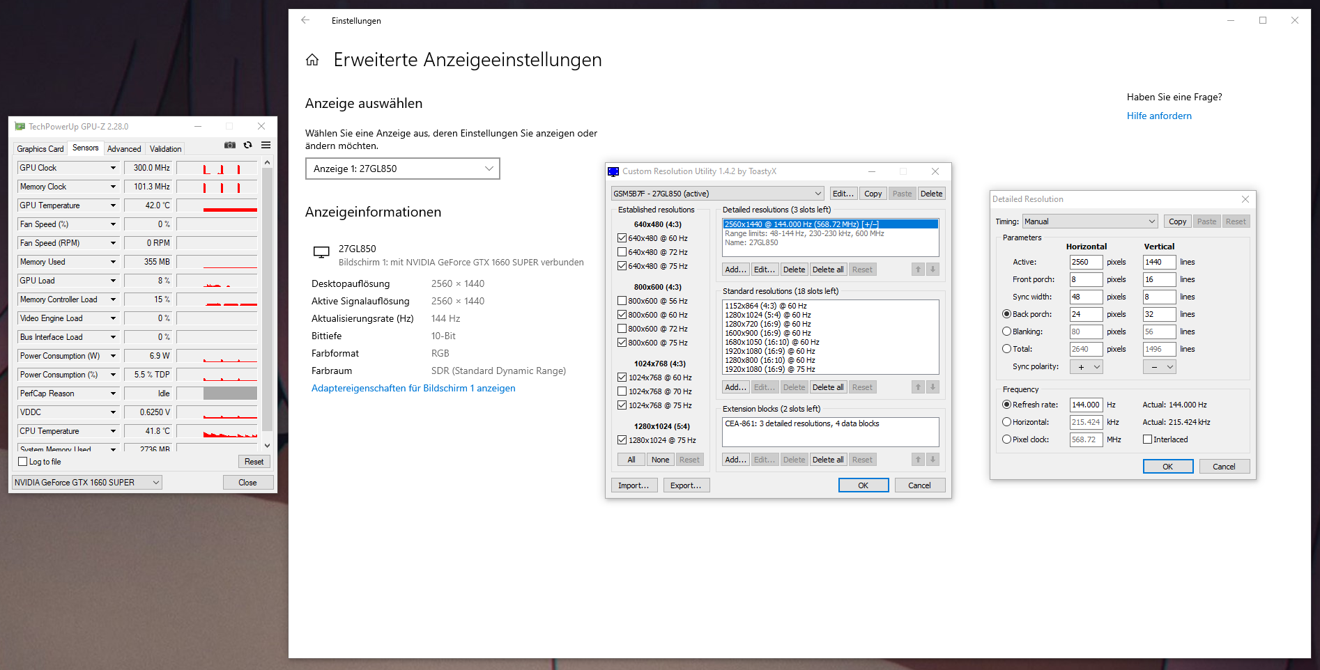 Zu CRU und den ganzen Begriffen gibts im Blur Busters Forum eine ganz gute Übersicht. Wie sich herausgestellt hat, kann man solche Auflösungen auch direkt im Grafikkartentreiber einstellen. Die Werte von CRU wollte das AMD Tool aber nicht übernehmen, sodass ich das einzige Preset, was angeblich mit meinem Monitor kompatibel ist, ausgewählt habe (CVT - Reduced Blanking).