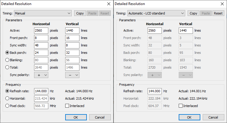 Was mir noch aufgefallen ist, ist, dass im Handbuch vom Monitor eine Reihe von Modi aufgelistet sind, von denen jedoch der letzte mit 1440p bei 144Hz in den "Extension blocks" von CRU nicht zu finden ist: