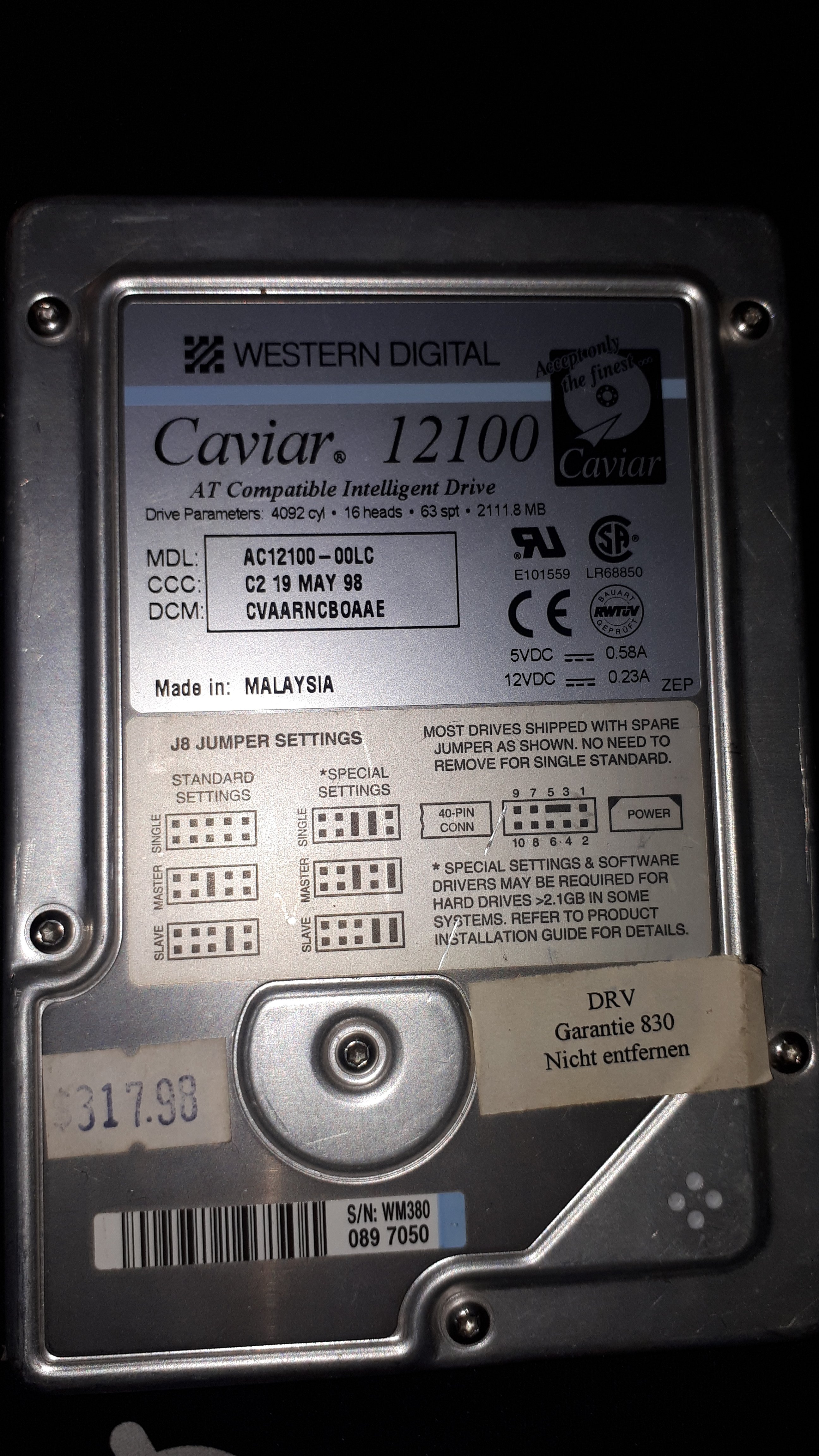 ich habe beim aufräumen eine uralte Western Digital Caviar 12100-00 LC Festplatte gefunden. Meinem Vater zufolge befinden sich auf der Festplatte viele alte Bilder, auf die wir gerne zugriff hätten. Jedoch kenne Ich mich nicht kein bisschen mit Festplatten und alten Anschlüssen aus und wollte mal fragen ob jemand vielleicht weis mit welchen Kabeln ich das Ding an einen modernen Laptop anschliessen kann. Bilder sind angehangen.