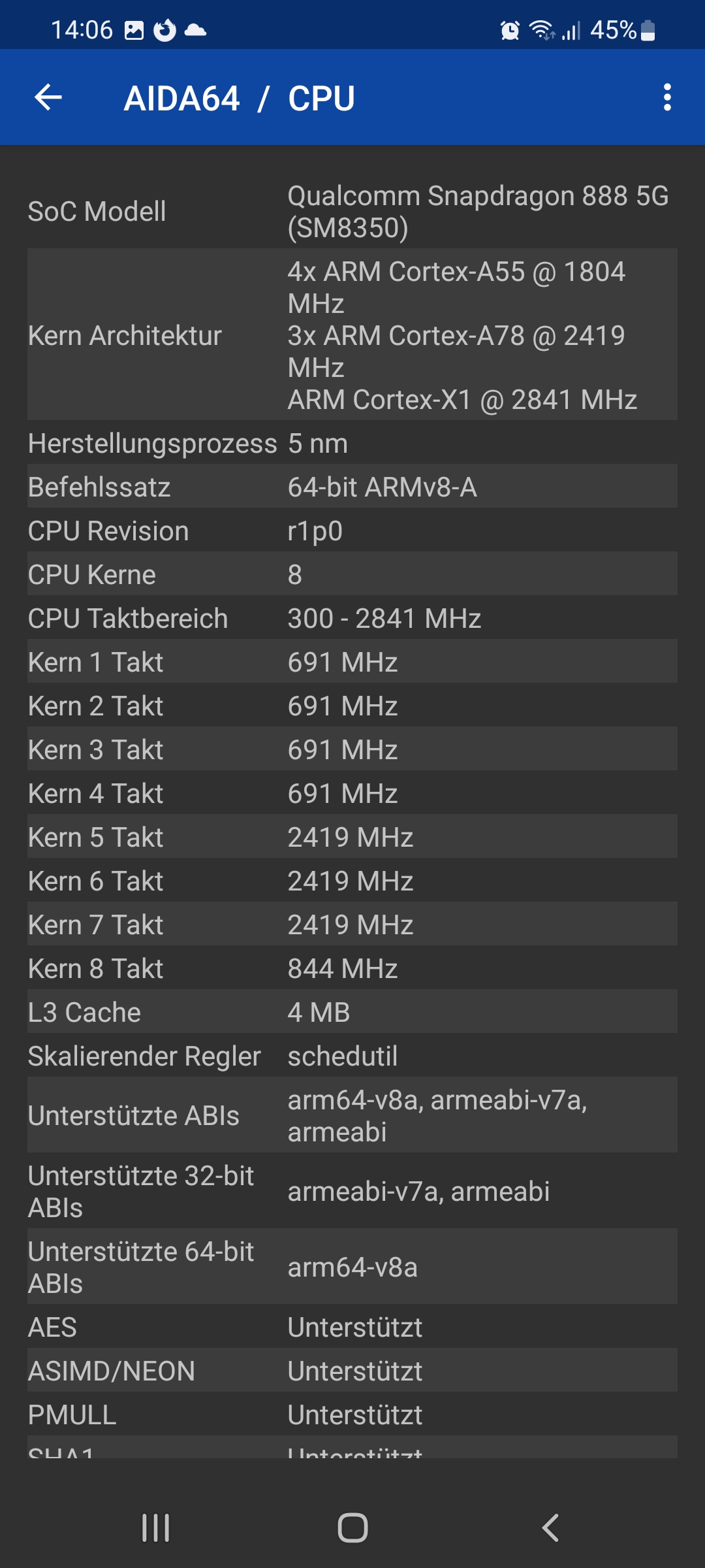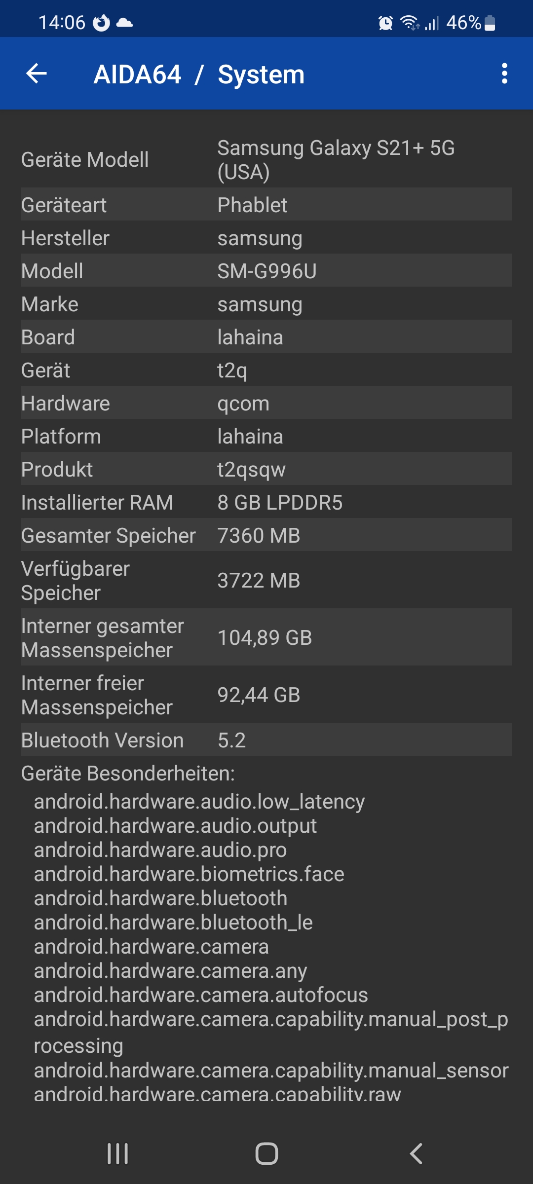 Aida 64 zeigt das es sich um die US Version mit snap 888 handelt was ja SoC technisch ein echter Glücksgriff wäre nur sind mir dann 400€ für ein Gerät das nur im 2.4 GHz WLan läuft doch bisschen viel.