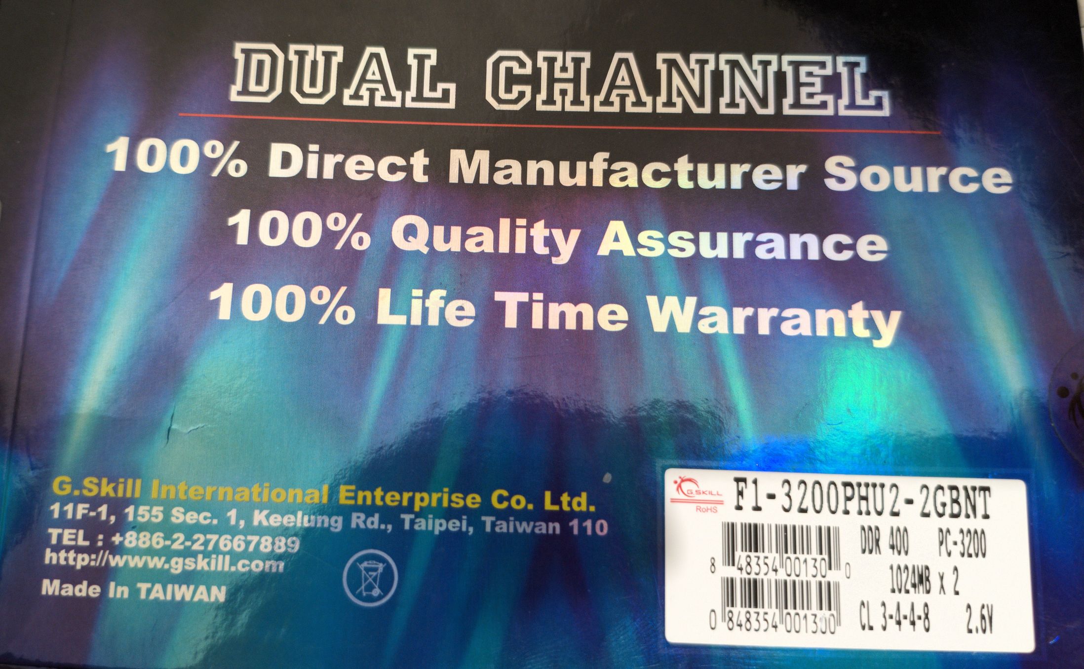 Alte GSkill Verpackung. Der bessere CL2 RAM war mir damals zu teuer.