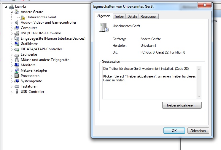 - Gerätemanager zeigt wirklich einen Fehler, siehe Bild.