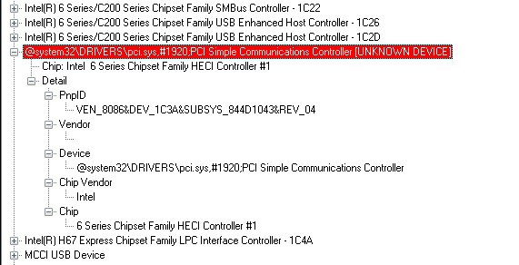 Könnte Intel Management Engine Interface-Treiber fehlen.