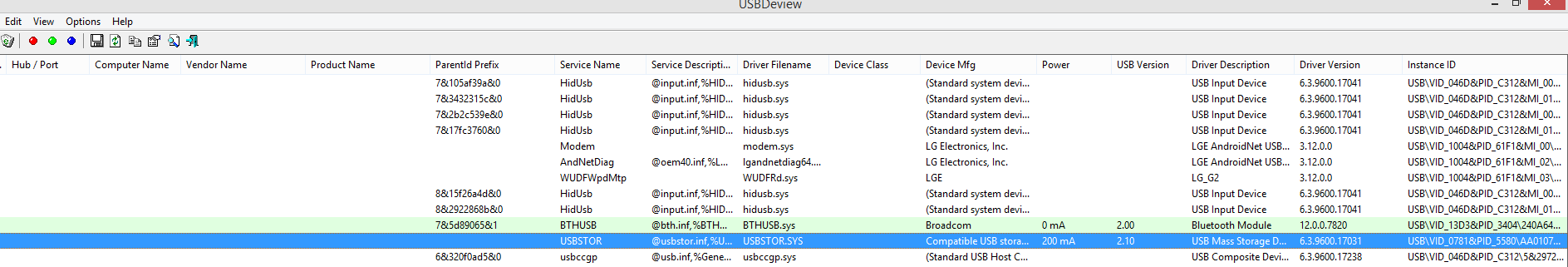 USBDeview zeigt für den Stick USB 2.1 an.