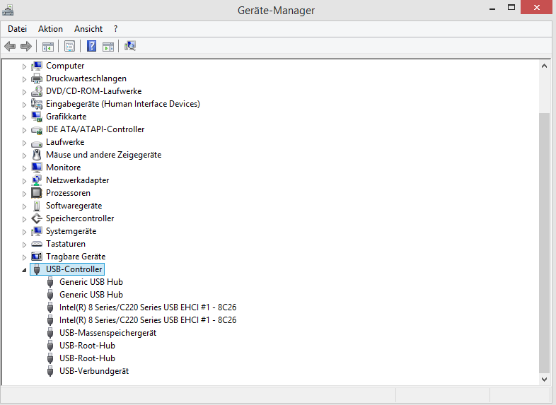 Der Gerätemanager zeigt keine fehlenden Treiber an, und findet keine neueren für die USB Geräte.