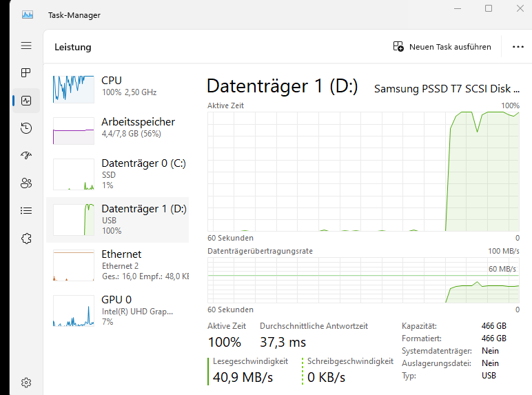 Und nun mein Problem,der USB 3.0 Slot ist obwohl ich nee SSD Extern,HDD,Stick alles 3.0 oder höher anschließe das so langsam ist,das ich bei 1Gb übertragung einkaufen gehen kann.
