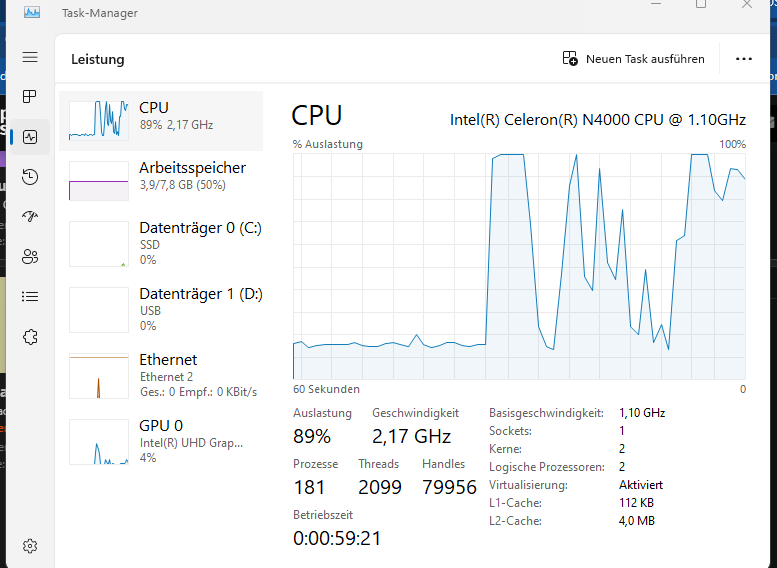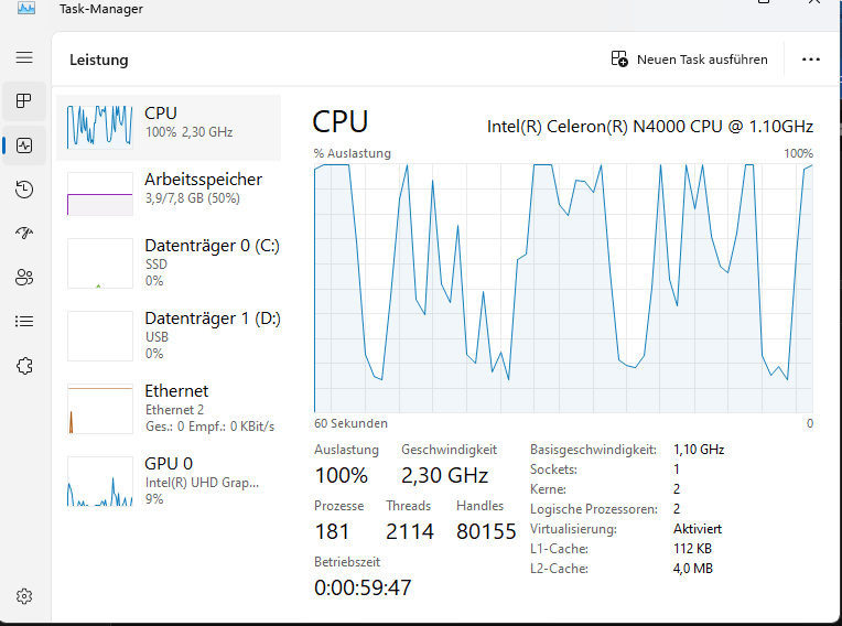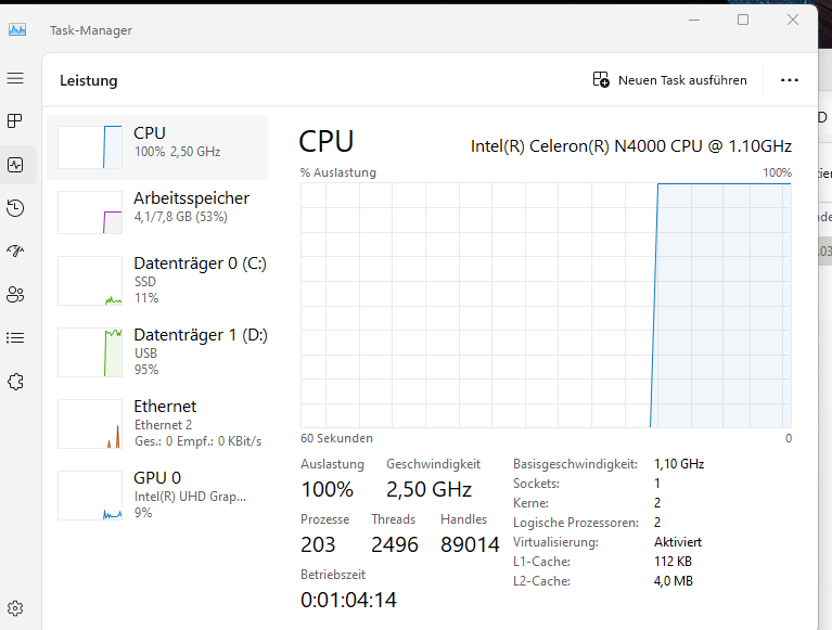 Leider war dat Schätzchen so langsam,das ich die Interne HDD gegen eine SSD getauscht habe und den Arbeitsspeicher von 4 auf 8GB erweitert habe,so weit so gut.