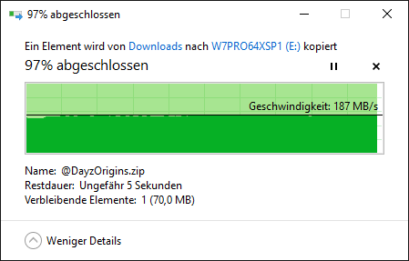 wenn ich nun dateien auf dem usb stick ziehe, zeigt er mir nur eine geschwindigkeit von max. 30 MB/s an,