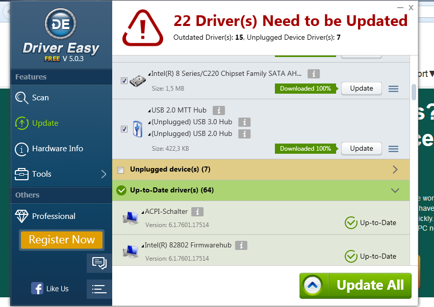 Habe jetzt mit DRIVER EASY versucht zu scannen 22 TREIBER sind zu aktualisieren!Aber diese lassen sich nach den runterladen nicht installieren bzw finde keinen Installordner.
