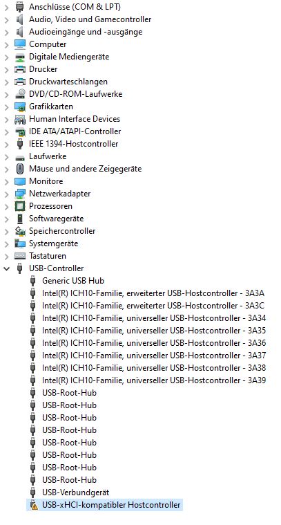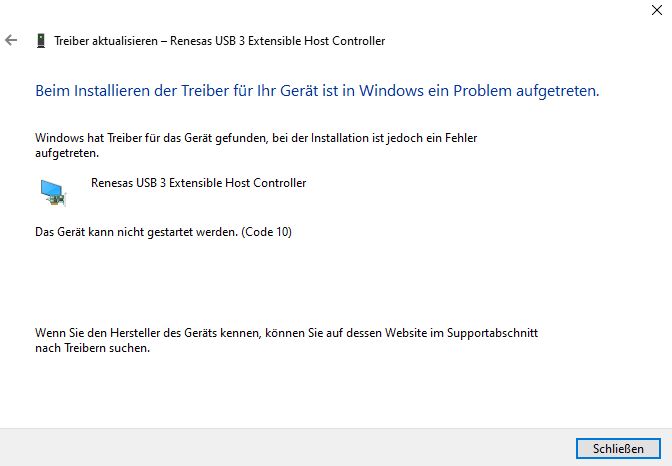 Vom Hersteller? Bitte einen Screenshot vom Geräte-Manager, das Menü vom USB-Controller aufklappen. Das Gerät, was Code 10 anzeigt, auswählen - Eigenschaften - oben Hardware-IDs auswählen, die Hardware-ID in die Zwischenablage kopieren und mit der Suchmaschine Deiner Wahl nach Treibern suchen.
