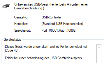 Seit dem Einbau meldet der Gerätemanager jedoch einen Fehler.