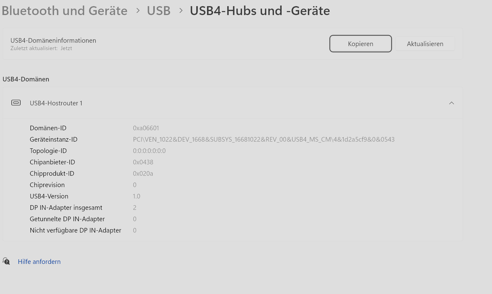 Ich habe ein notebook mit einem hdmi 2.1 und 2 usb c Anschlüssen. Einer davon usb c 4.0 bis 40gbit und dp 1.4a und der andere usb c 3.2x2 20gbit mit dp 1.4a.
