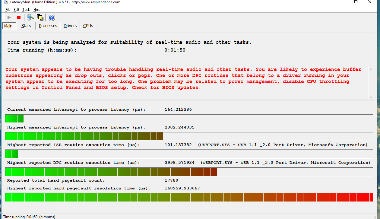 ich nutze ein Audio Interface um meine E-Gitarre mit meinen PC zu verbinden. Um die Latenz niedrig zu halten lässt sich im Treiber des Audio Interfaces die Systemperformance einstellen. Wenn ich die Einstellung über normal setze knackt es nur noch. Seltsamerweise habe ich dieses Problem auf meinen alten Dual Core Notebook nicht, obwohl es wesentlich Leistungsschwacher als mein i5 3570k Desktop ist. Hat jemand eine Idee woran es liegen könnte?