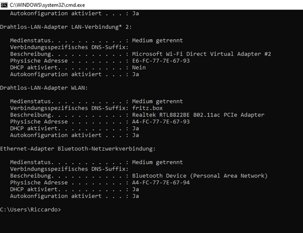 Wenn ich nun alle Wlan Verbindungen deaktiviere, wird nicht auf Kabelverbindung umgeschaltet, bzw. der Adapter nicht erkannt?