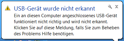 ich habe ein Problem mit meinem USB-Dongle. Wenn ich ihn an einen USB-Anschluss anstecke erscheint die Fehlermeldung