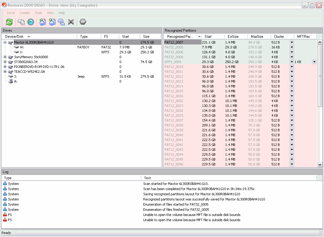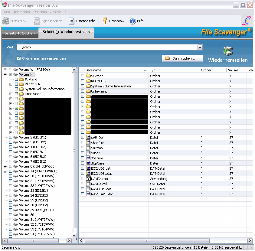 und als nächstes Resultat (DeeperSearch) schliesslich dann die FAT und NTFS Partition.