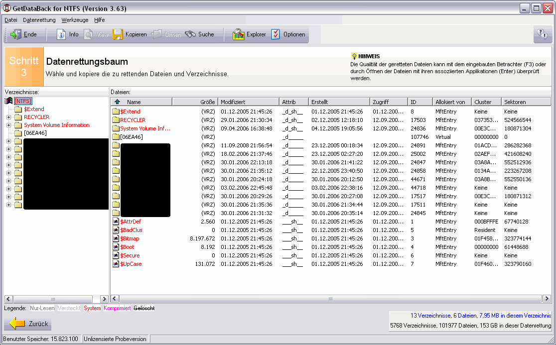 "System Volume Information" und "Recycler". Die Partition um die es geht, ist die NTFS Partition.